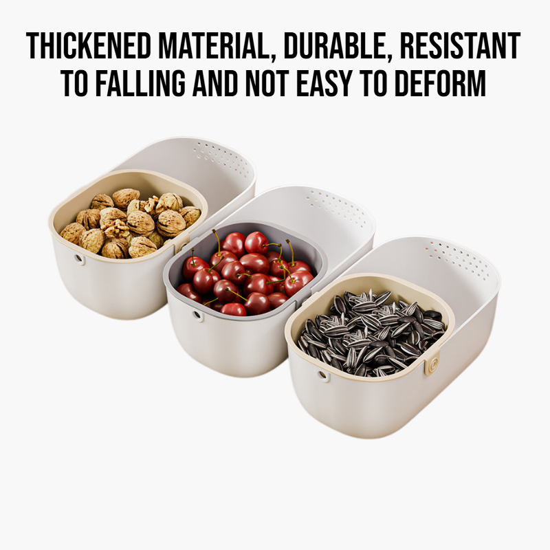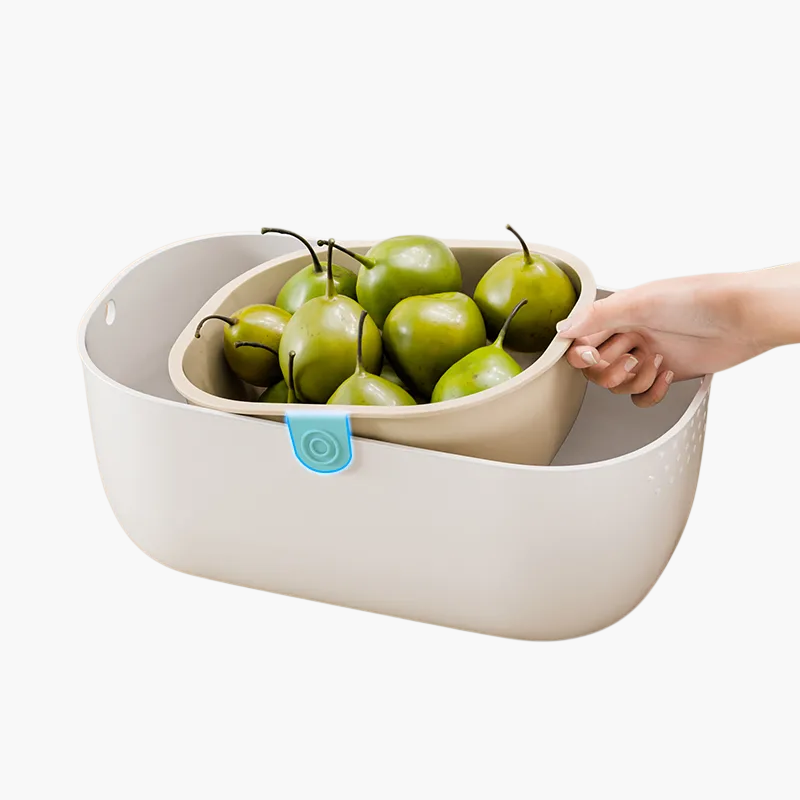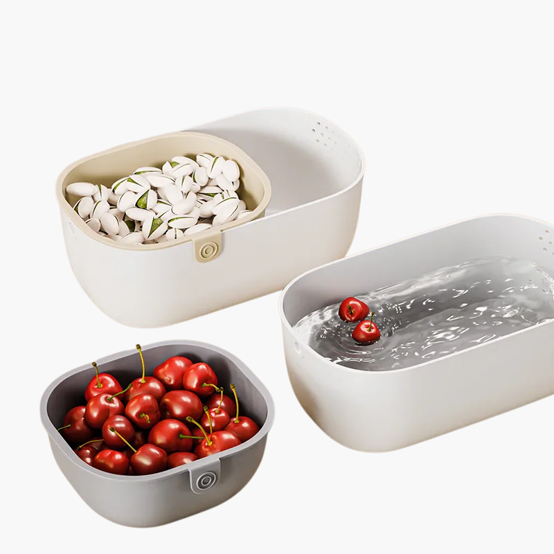 Multifunctional drain basket for easy rinsing, draining, and storage. Space-saving design, durable material, suitable for fruits, vegetables, and pasta.