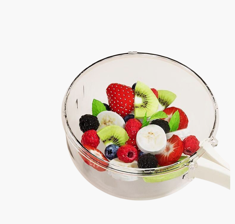Multi-purpose fruit drain basket for efficient washing, draining, and storing of fruits and vegetables. Durable, space-saving design with easy-grip handles and food-grade material.