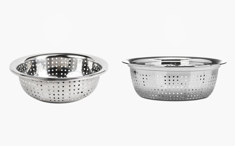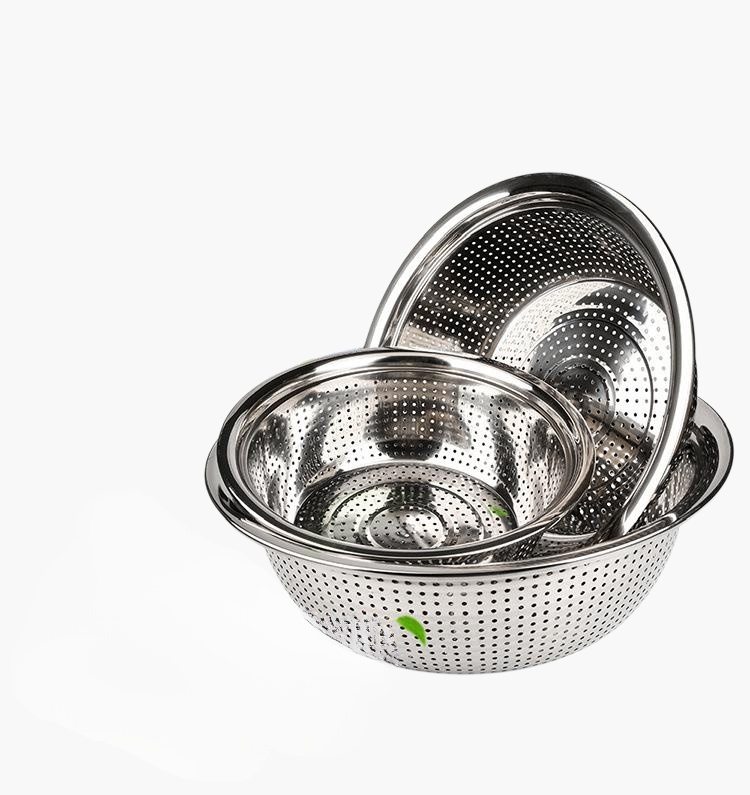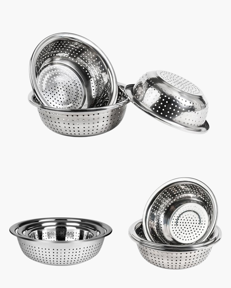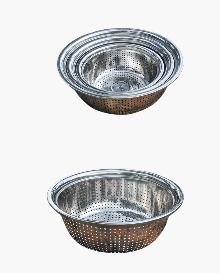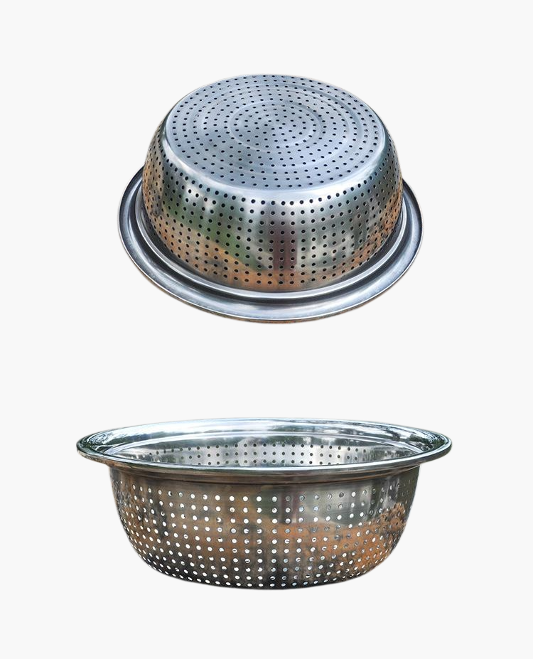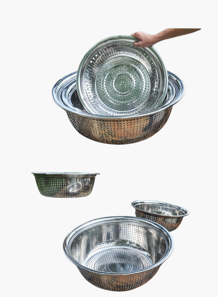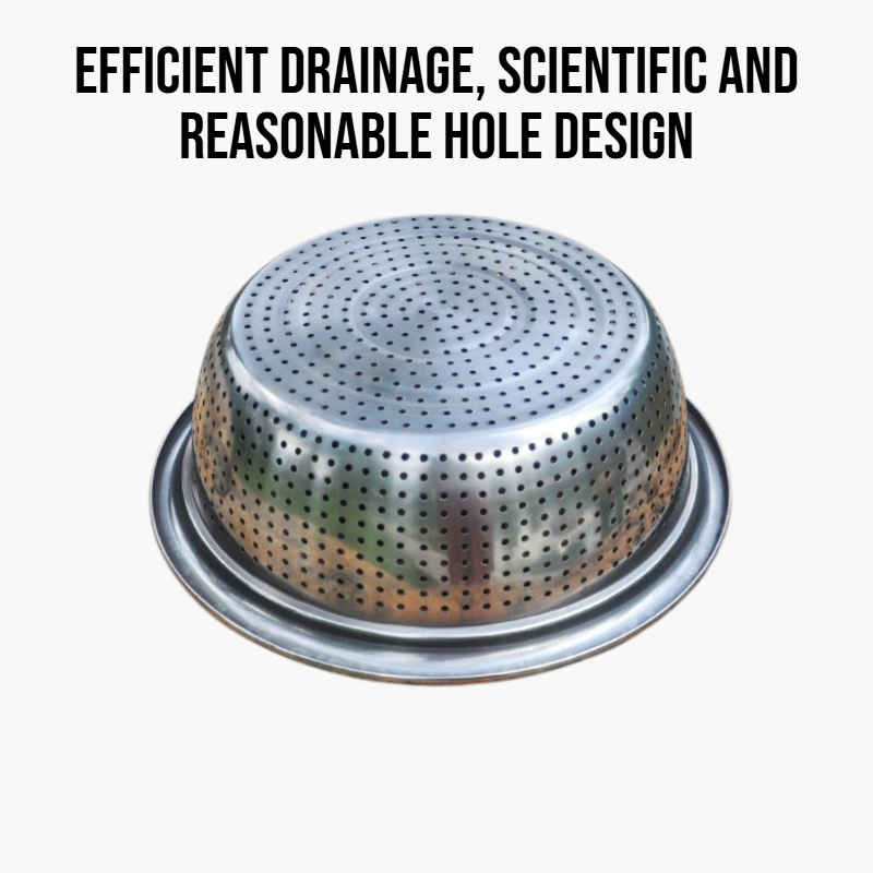 Durable stainless steel large colander, rust-resistant, easy to clean, large capacity, sturdy handles, perfect for draining pasta, vegetables, and fruits.
